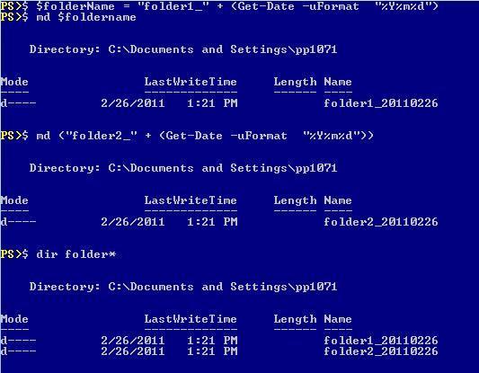 $folderName = “folder1_” + (Get-Date -uFormat  “%Y%m%d”)